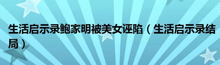 大家好,小育來為大家講解下。生活啟示錄鮑家明被美女誣陷,生活啟示錄結(jié)局很多人還不知道,現(xiàn)在讓我們一起來看看吧!