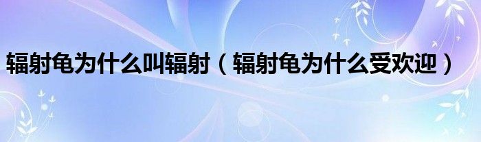 大家好,小育來(lái)為大家講解下。輻射龜為什么叫輻射,輻射龜為什么受歡迎很多人還不知道,現(xiàn)在讓我們一起來(lái)看看吧!