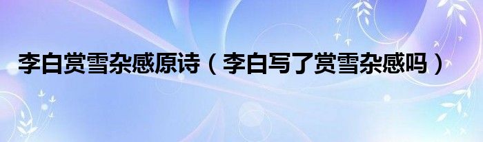 大家好,小育來為大家講解下。李白賞雪雜感原詩,李白寫了賞雪雜感嗎很多人還不知道,現(xiàn)在讓我們一起來看看吧!