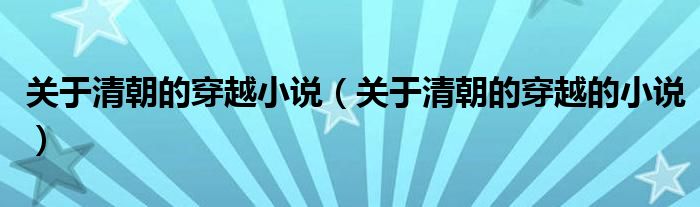 大家好,小育來為大家講解下。關(guān)于清朝的穿越小說,關(guān)于清朝的穿越的小說很多人還不知道,現(xiàn)在讓我們一起來看看吧!