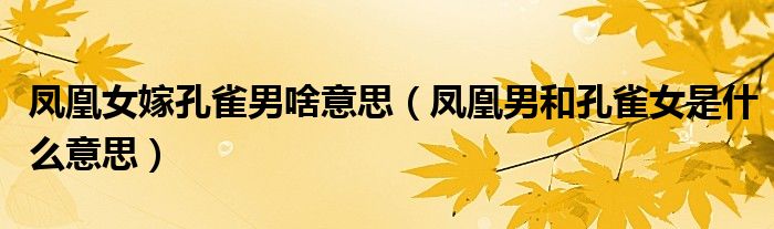 大家好,小育來(lái)為大家講解下。鳳凰女嫁孔雀男啥意思,鳳凰男和孔雀女是什么意思很多人還不知道,現(xiàn)在讓我們一起來(lái)看看吧!