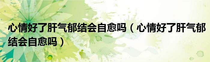 摘要大家好,知識(shí)小編來為大家解答以上的問題。心情好了肝氣郁結(jié)會(huì)自愈嗎,心情好了肝氣郁結(jié)會(huì)自愈嗎很多人還不知道,現(xiàn)在讓我們一起來看看吧!
