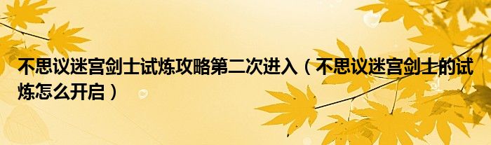 大家好,小育來為大家講解下。不思議迷宮劍士試煉攻略第二次進入,不思議迷宮劍士的試煉怎么開啟很多人還不知道,現(xiàn)在讓我們一起來看看吧!