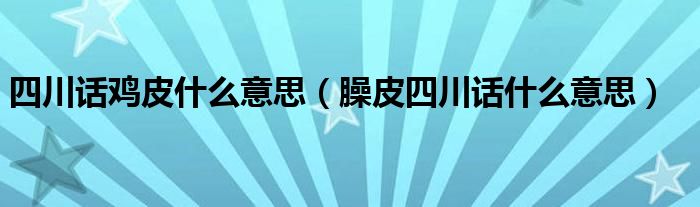 大家好,小育來(lái)為大家講解下。四川話雞皮什么意思,臊皮四川話什么意思很多人還不知道,現(xiàn)在讓我們一起來(lái)看看吧!