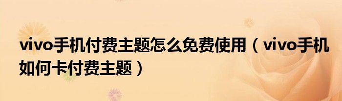 大家好,小育來為大家講解下。vivo手機付費主題怎么免費使用,vivo手機如何卡付費主題很多人還不知道,現(xiàn)在讓我們一起來看看吧!
