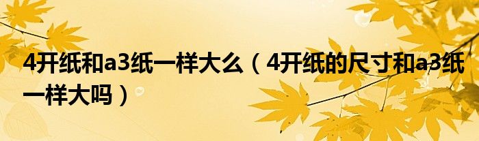 大家好,小育來(lái)為大家講解下。4開(kāi)紙和a3紙一樣大么,4開(kāi)紙的尺寸和a3紙一樣大嗎很多人還不知道,現(xiàn)在讓我們一起來(lái)看看吧!