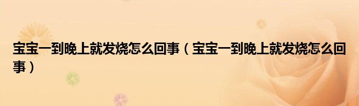 大家好,知識(shí)小編來為大家解答以上的問題。寶寶一到晚上就發(fā)燒怎么回事,寶寶一到晚上就發(fā)燒怎么回事很多人還不知道,現(xiàn)在讓我們一起來看看吧!