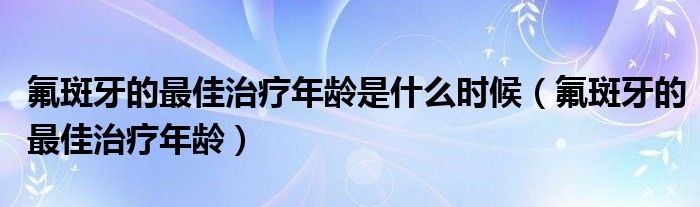 大家好,知識小編來為大家解答以上的問題。氟斑牙的最佳治療年齡是什么時候,氟斑牙的最佳治療年齡很多人還不知道,現(xiàn)在讓我們一起來看看吧!