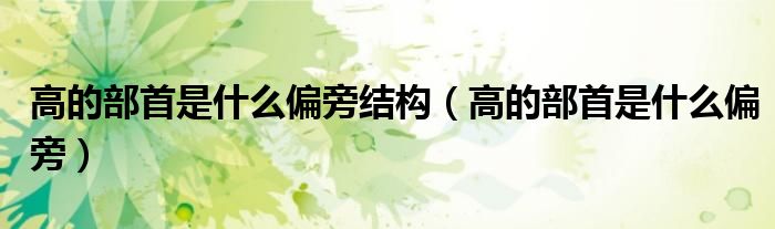 大家好,小育來(lái)為大家講解下。高的部首是什么偏旁結(jié)構(gòu),高的部首是什么偏旁很多人還不知道,現(xiàn)在讓我們一起來(lái)看看吧!