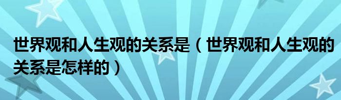 大家好,小育來為大家講解下。世界觀和人生觀的關系是,世界觀和人生觀的關系是怎樣的很多人還不知道,現在讓我們一起來看看吧!