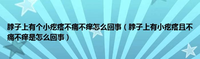 摘要大家好,知識小編來為大家解答以上的問題。脖子上有個小疙瘩不痛不癢怎么回事,脖子上有小疙瘩且不痛不癢是怎么回事很多人還不知道,現(xiàn)在讓