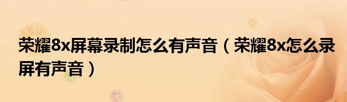 大家好,小育來(lái)為大家講解下。榮耀8x屏幕錄制怎么有聲音,榮耀8x怎么錄屏有聲音很多人還不知道,現(xiàn)在讓我們一起來(lái)看看吧!