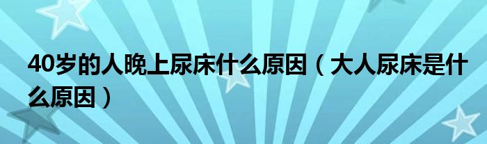 大家好,知識小編來為大家解答以上的問題。40歲的人晚上尿床什么原因,大人尿床是什么原因很多人還不知道,現(xiàn)在讓我們一起來看看吧!