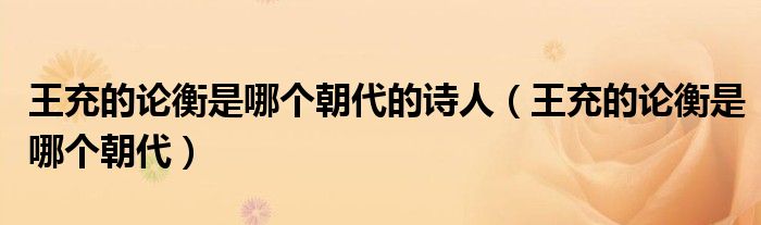 摘要大家好,小育來(lái)為大家講解下。王充的論衡是哪個(gè)朝代的詩(shī)人,王充的論衡是哪個(gè)朝代很多人還不知道,現(xiàn)在讓我們一起來(lái)看看吧!1、王充的《平