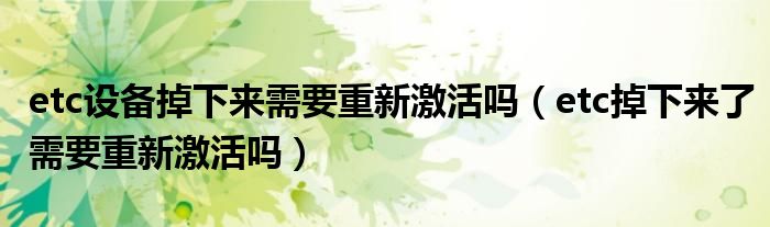 大家好,小育來為大家講解下。etc設(shè)備掉下來需要重新激活嗎,etc掉下來了需要重新激活嗎很多人還不知道,現(xiàn)在讓我們一起來看看吧!