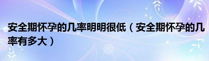 大家好,知識小編來為大家解答以上的問題。安全期懷孕的幾率明明很低,安全期懷孕的幾率有多大很多人還不知道,現(xiàn)在讓我們一起來看看吧!