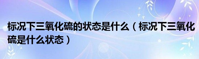 大家好,小育來為大家講解下。標(biāo)況下三氧化硫的狀態(tài)是什么,標(biāo)況下三氧化硫是什么狀態(tài)很多人還不知道,現(xiàn)在讓我們一起來看看吧!