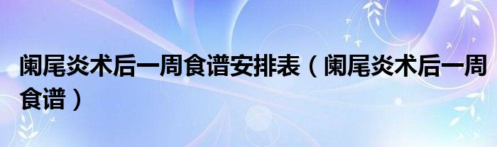 大家好,知識小編來為大家解答以上的問題。闌尾炎術(shù)后一周食譜安排表,闌尾炎術(shù)后一周食譜很多人還不知道,現(xiàn)在讓我們一起來看看吧!