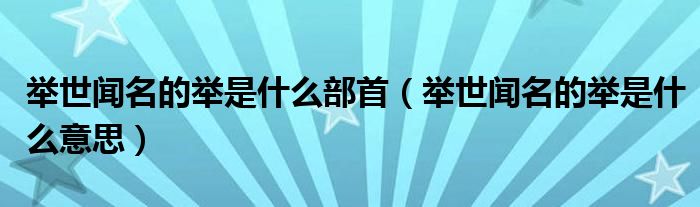 大家好,小育來為大家講解下。舉世聞名的舉是什么部首,舉世聞名的舉是什么意思很多人還不知道,現(xiàn)在讓我們一起來看看吧!