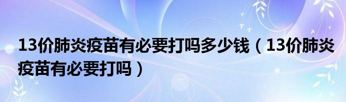 摘要大家好,知識(shí)小編來為大家解答以上的問題。13價(jià)肺炎疫苗有必要打嗎多少錢,13價(jià)肺炎疫苗有必要打嗎很多人還不知道,現(xiàn)在讓我們一起來看看吧
