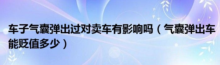 大家好,小育來(lái)為大家講解下。車(chē)子氣囊彈出過(guò)對(duì)賣(mài)車(chē)有影響嗎,氣囊彈出車(chē)能貶值多少很多人還不知道,現(xiàn)在讓我們一起來(lái)看看吧!