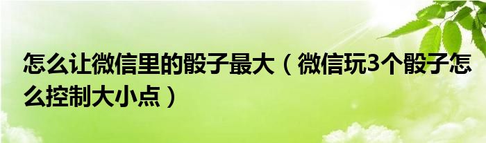 大家好,小育來(lái)為大家講解下。怎么讓微信里的骰子最大,微信玩3個(gè)骰子怎么控制大小點(diǎn)很多人還不知道,現(xiàn)在讓我們一起來(lái)看看吧!