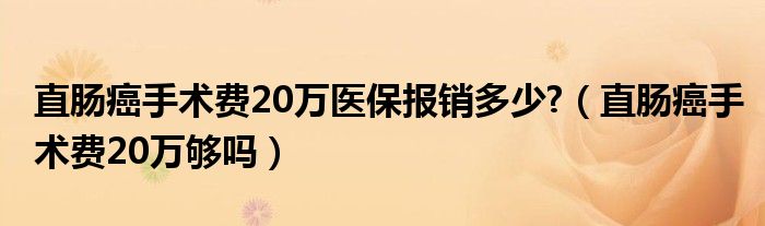 大家好,知識小編來為大家解答以上的問題。直腸癌手術(shù)費20萬醫(yī)保報銷多少?,直腸癌手術(shù)費20萬夠嗎很多人還不知道,現(xiàn)在讓我們一起來看看吧!