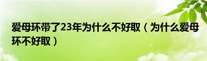 大家好,知識小編來為大家解答以上的問題。愛母環(huán)帶了23年為什么不好取,為什么愛母環(huán)不好取很多人還不知道,現(xiàn)在讓我們一起來看看吧!