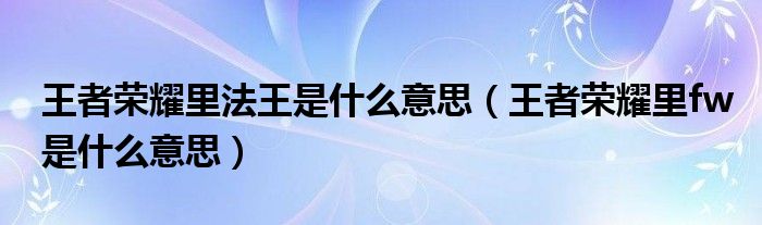 大家好,小育來為大家講解下。王者榮耀里法王是什么意思,王者榮耀里fw是什么意思很多人還不知道,現(xiàn)在讓我們一起來看看吧!