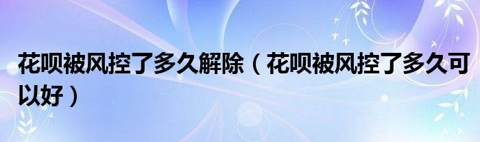 大家好,小育來為大家講解下。花唄被風控了多久解除,花唄被風控了多久可以好很多人還不知道,現(xiàn)在讓我們一起來看看吧!