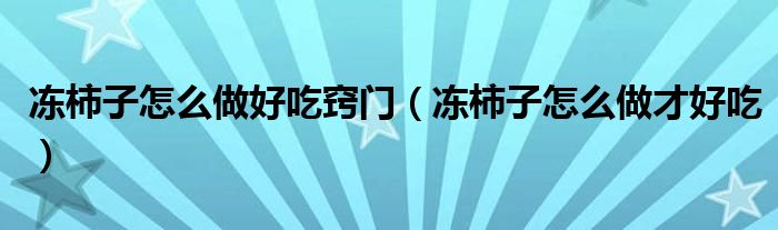 大家好,小育來為大家講解下。凍柿子怎么做好吃竅門,凍柿子怎么做才好吃很多人還不知道,現(xiàn)在讓我們一起來看看吧!