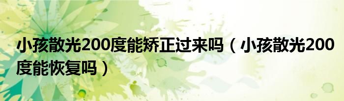 摘要大家好,知識小編來為大家解答以上的問題。小孩散光200度能矯正過來嗎,小孩散光200度能恢復(fù)嗎很多人還不知道,現(xiàn)在讓我們一起來看看吧!散