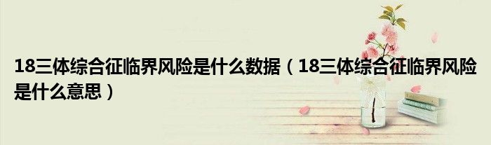 大家好,知識小編來為大家解答以上的問題。18三體綜合征臨界風(fēng)險(xiǎn)是什么數(shù)據(jù),18三體綜合征臨界風(fēng)險(xiǎn)是什么意思很多人還不知道,現(xiàn)在讓我們一起來看看吧!