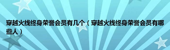 大家好,小育來為大家講解下。穿越火線終身榮譽會員有幾個,穿越火線終身榮譽會員有哪些人很多人還不知道,現(xiàn)在讓我們一起來看看吧!