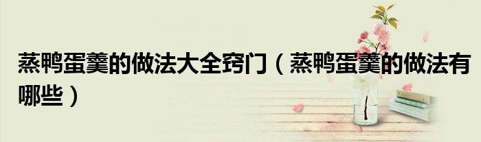 大家好,小育來(lái)為大家講解下。蒸鴨蛋羹的做法大全竅門(mén),蒸鴨蛋羹的做法有哪些很多人還不知道,現(xiàn)在讓我們一起來(lái)看看吧!