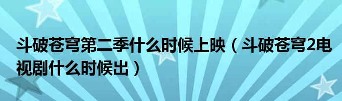 摘要大家好,小育來為大家講解下。斗破蒼穹第二季什么時(shí)候上映,斗破蒼穹2電視劇什么時(shí)候出很多人還不知道,現(xiàn)在讓我們一起來看看吧!1、《斗破