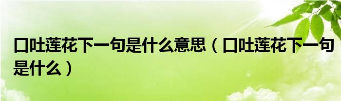 大家好,小育來為大家講解下??谕律徎ㄏ乱痪涫鞘裁匆馑?,口吐蓮花下一句是什么很多人還不知道,現(xiàn)在讓我們一起來看看吧!