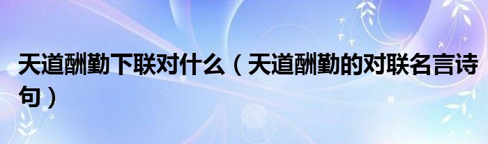 大家好,小育來為大家講解下。天道酬勤下聯(lián)對什么,天道酬勤的對聯(lián)名言詩句很多人還不知道,現(xiàn)在讓我們一起來看看吧!