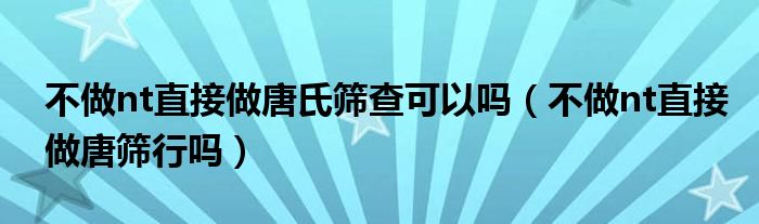 大家好,知識(shí)小編來為大家解答以上的問題。不做nt直接做唐氏篩查可以嗎,不做nt直接做唐篩行嗎很多人還不知道,現(xiàn)在讓我們一起來看看吧!