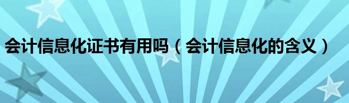 大家好,小育來(lái)為大家講解下。會(huì)計(jì)信息化證書(shū)有用嗎,會(huì)計(jì)信息化的含義很多人還不知道,現(xiàn)在讓我們一起來(lái)看看吧!