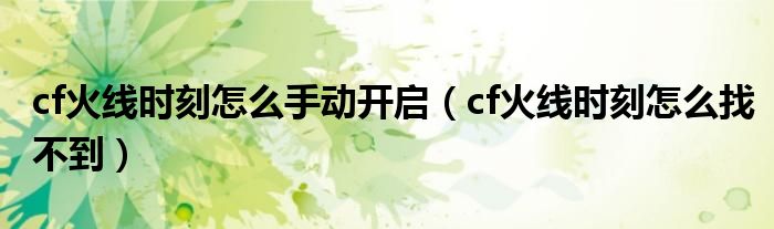 大家好,小育來為大家講解下。cf火線時刻怎么手動開啟,cf火線時刻怎么找不到很多人還不知道,現(xiàn)在讓我們一起來看看吧!