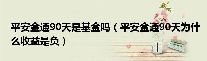 大家好,小育來(lái)為大家講解下。平安金通90天是基金嗎,平安金通90天為什么收益是負(fù)很多人還不知道,現(xiàn)在讓我們一起來(lái)看看吧!