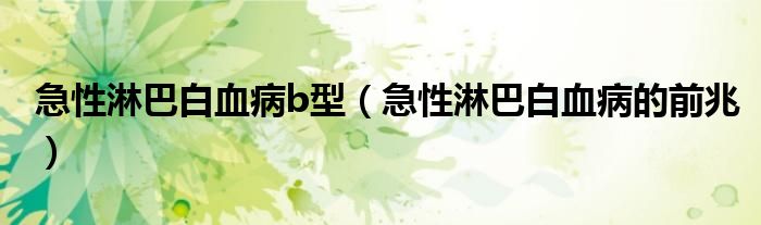 大家好,知識小編來為大家解答以上的問題。急性淋巴白血病b型,急性淋巴白血病的前兆很多人還不知道,現(xiàn)在讓我們一起來看看吧!