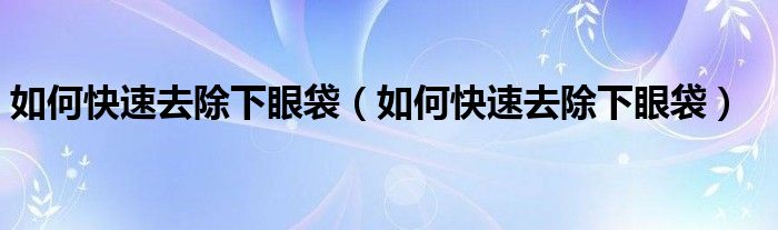 摘要大家好,知識(shí)小編來(lái)為大家解答以上的問(wèn)題。如何快速去除下眼袋,如何快速去除下眼袋很多人還不知道,現(xiàn)在讓我們一起來(lái)看看吧!如果快速去除