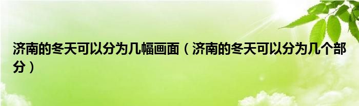 大家好,小育來為大家講解下。濟南的冬天可以分為幾幅畫面,濟南的冬天可以分為幾個部分很多人還不知道,現(xiàn)在讓我們一起來看看吧!