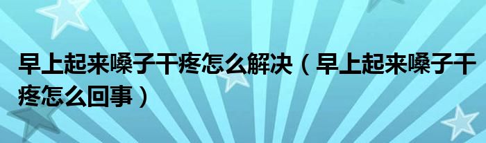 摘要大家好,知識小編來為大家解答以上的問題。早上起來嗓子干疼怎么解決,早上起來嗓子干疼怎么回事很多人還不知道,現(xiàn)在讓我們一起來看看吧!