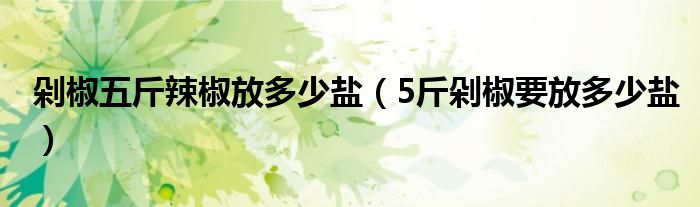 大家好,小育來(lái)為大家講解下。剁椒五斤辣椒放多少鹽,5斤剁椒要放多少鹽很多人還不知道,現(xiàn)在讓我們一起來(lái)看看吧!