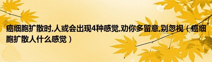 大家好,知識小編來為大家解答以上的問題。癌細胞擴散時,人或會出現(xiàn)4種感覺,勸你多留意,別忽視,癌細胞擴散人什么感覺很多人還不知道,現(xiàn)在讓我們一起來看看吧!