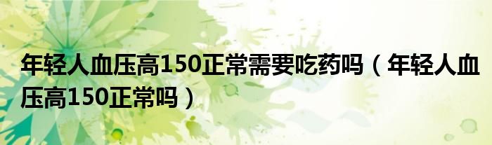 大家好,知識(shí)小編來(lái)為大家解答以上的問(wèn)題。年輕人血壓高150正常需要吃藥嗎,年輕人血壓高150正常嗎很多人還不知道,現(xiàn)在讓我們一起來(lái)看看吧!