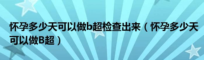 大家好,知識小編來為大家解答以上的問題。懷孕多少天可以做b超檢查出來,懷孕多少天可以做B超很多人還不知道,現(xiàn)在讓我們一起來看看吧!